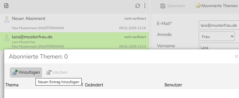 Sie können Newsletter zu unterschiedlichen Themen anlegen. In diesem Fall weisen Sie dem Abonnenten das Thema zu, zu dem er einen Newsletter erhalten soll.