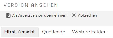Möchten Sie eine bestimmte Version in eine aktuelle Arbeitsversion umwandeln, klicken Sie auf Als Arbeitsversion übernehmen. In diesem Moment generiert der TWT Publisher eine weitere Arbeitsversion und ersetzt die aktuelle.